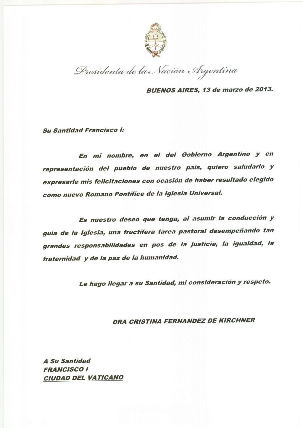 #habemuspapam Cristina Fernández Felicita A Francisco via www.sinembargo.mx